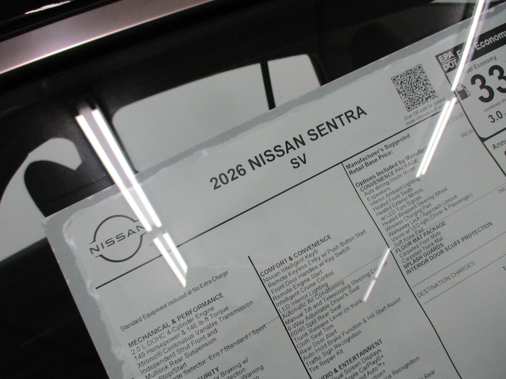 2026 Nissan Sentra SV Sedan mpg