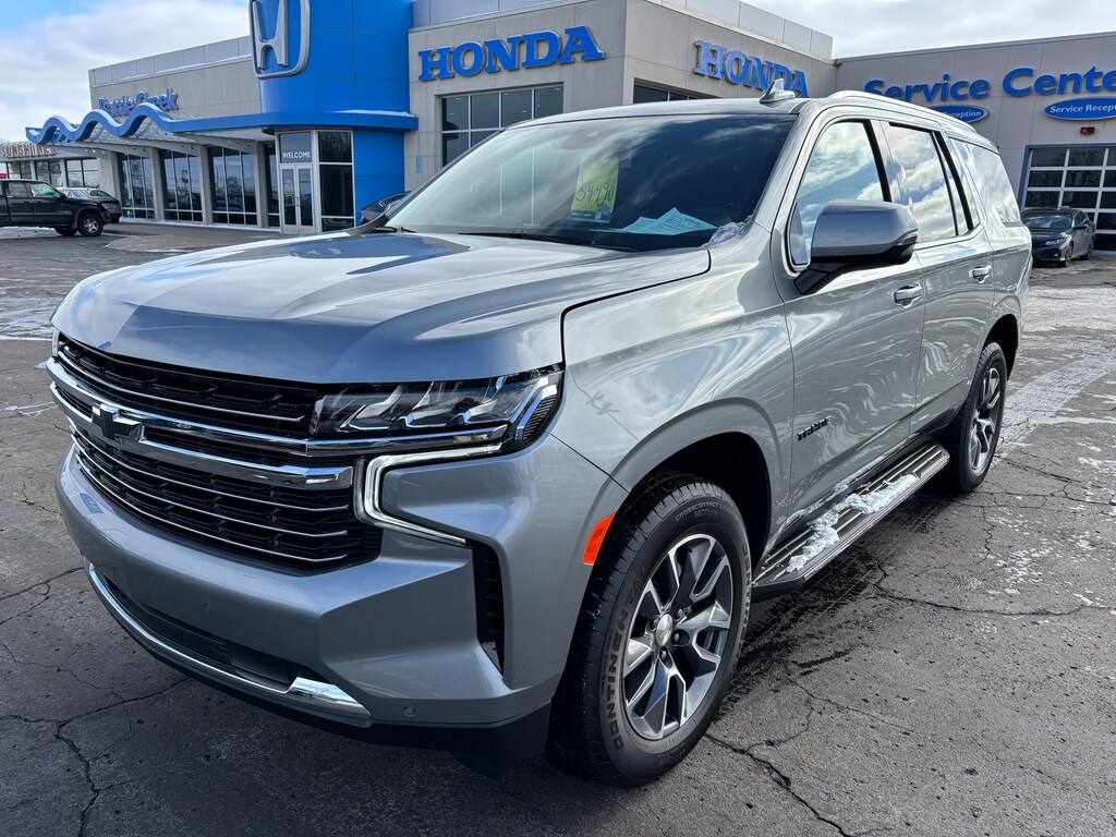 Welcome to Battle Creek Honda!! You can contact us at (269)965-2205. This 2023 Chevrolet Tahoe LT 4wd comes equipped with Automatic Transmission, Dual Zone Auto Climate Control, Cruise Control, Tilt Wheel, Power Windows, Power Locks, Power Mirrors, Power Drivers Seat with Memory, Heated Steering Wheel, Leather Interior, BOSE AM/FM/XM Radio, Wireless Charging Pad, Power Tailgate, Keyless Entry with Remote Start, Heated Seats, Alloy Wheels, All Wheel Drive and Much More!! Don't Delay Call Battle Creek Honda Today For Details!!
