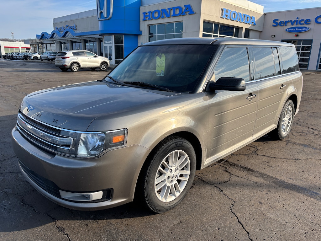 Welcome to Battle Creek Honda!! You can contact us at (269)965-2205. This 2014 Ford Flex SEL Awd comes equipped with Automatic Transmission, Auto Climate Control, Cruise Control, Tilt Wheel, Power Windows, Power Locks, Power Mirrors, Power Drivers Seat, Heated Seats, Alloy Wheels, AM/FM/XM Radio, Keyless Entry, 3rd Row Seating, All WHeel Drive and Much More!! Don't Delay Call Battle Creek Honda Today For Details!!